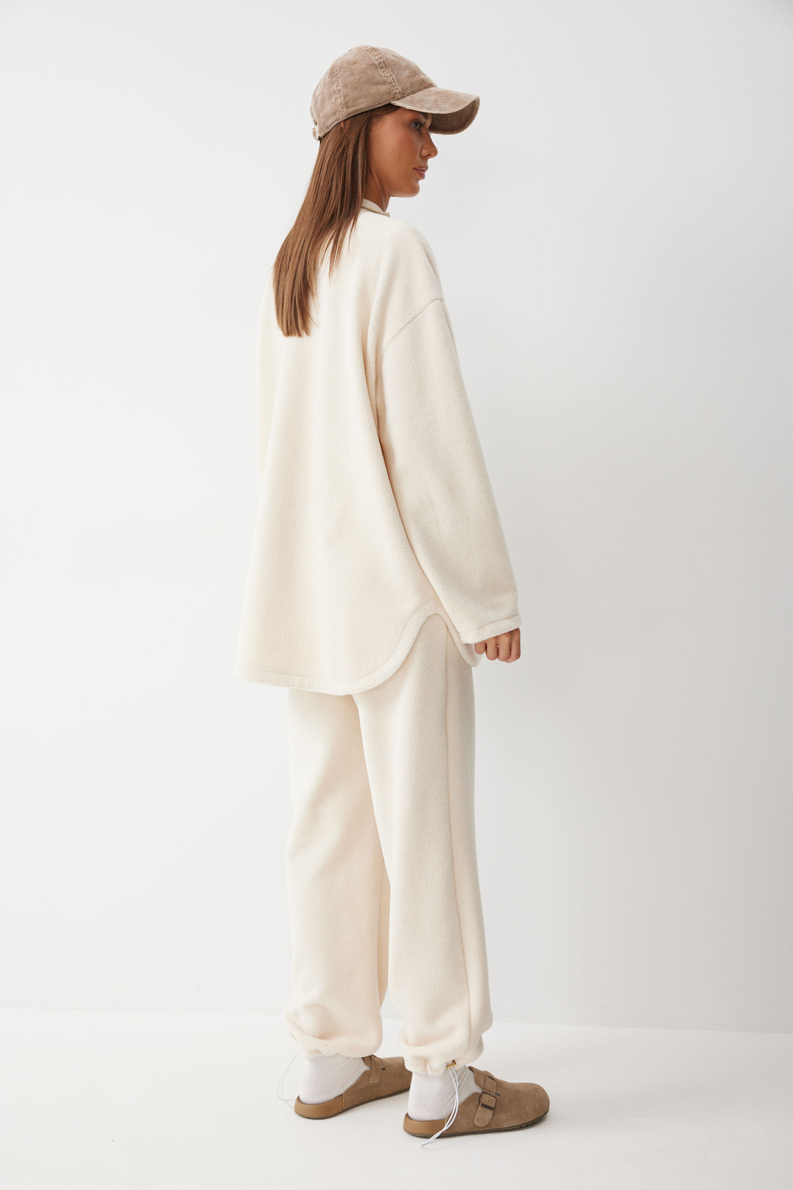 Джемпер 4185 (молоко) 2890 44-60 Костюм, состоящий из жакета и брюк. Жакет прямого силуэта с фигурным низом из трикотажного полотна. Горловина округлая, по центру застежка на кнопки. Рукав со спущенной линией плеча. По переду накладные карманы. Жакет без подкладки. Обращаем ваше внимание, что фурнитура может отличаться от фото. "Длина жакета (44-48р - 75см)(50-54р - 78см)(56-60р - 80см)