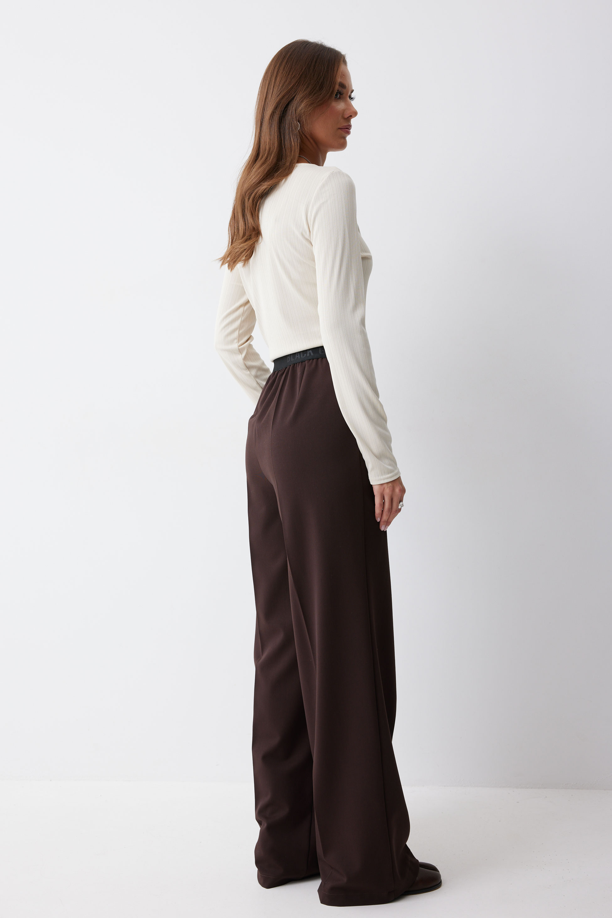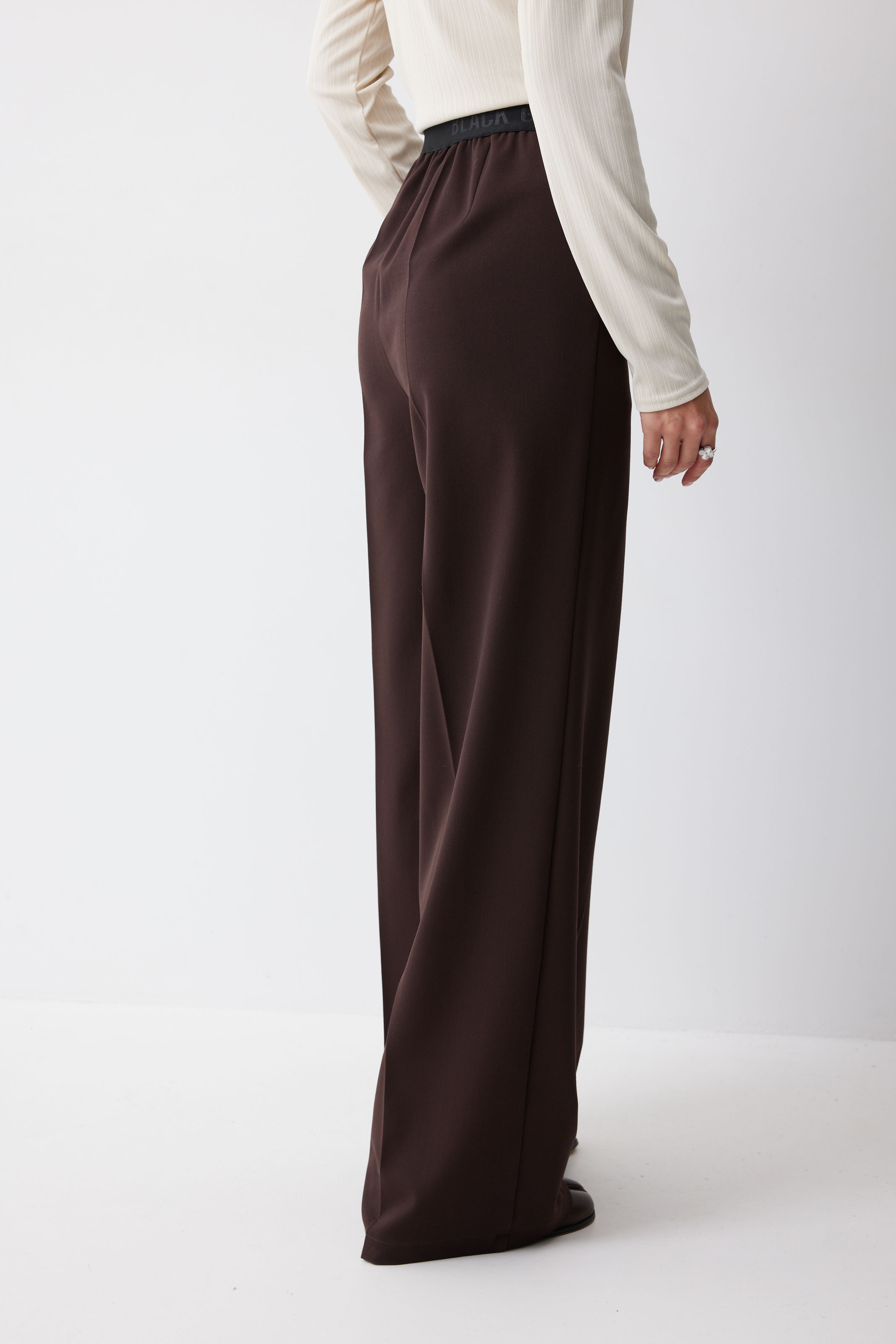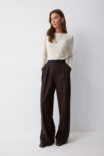 Брюки 4200 (коричневый) 2805 44-54 Брюки прямого силуэта из костюмной ткани. По верху брюк декоративная резинка. На передних половинках карманы и декоративные складки. На задних половинках вытачки. Обращаем ваше внимание, что фурнитура может отличаться от фото. Длина брюк: (44-48р - 114см+4см пояс-резинка),(50-54р - 115+4см пояс-резинка)