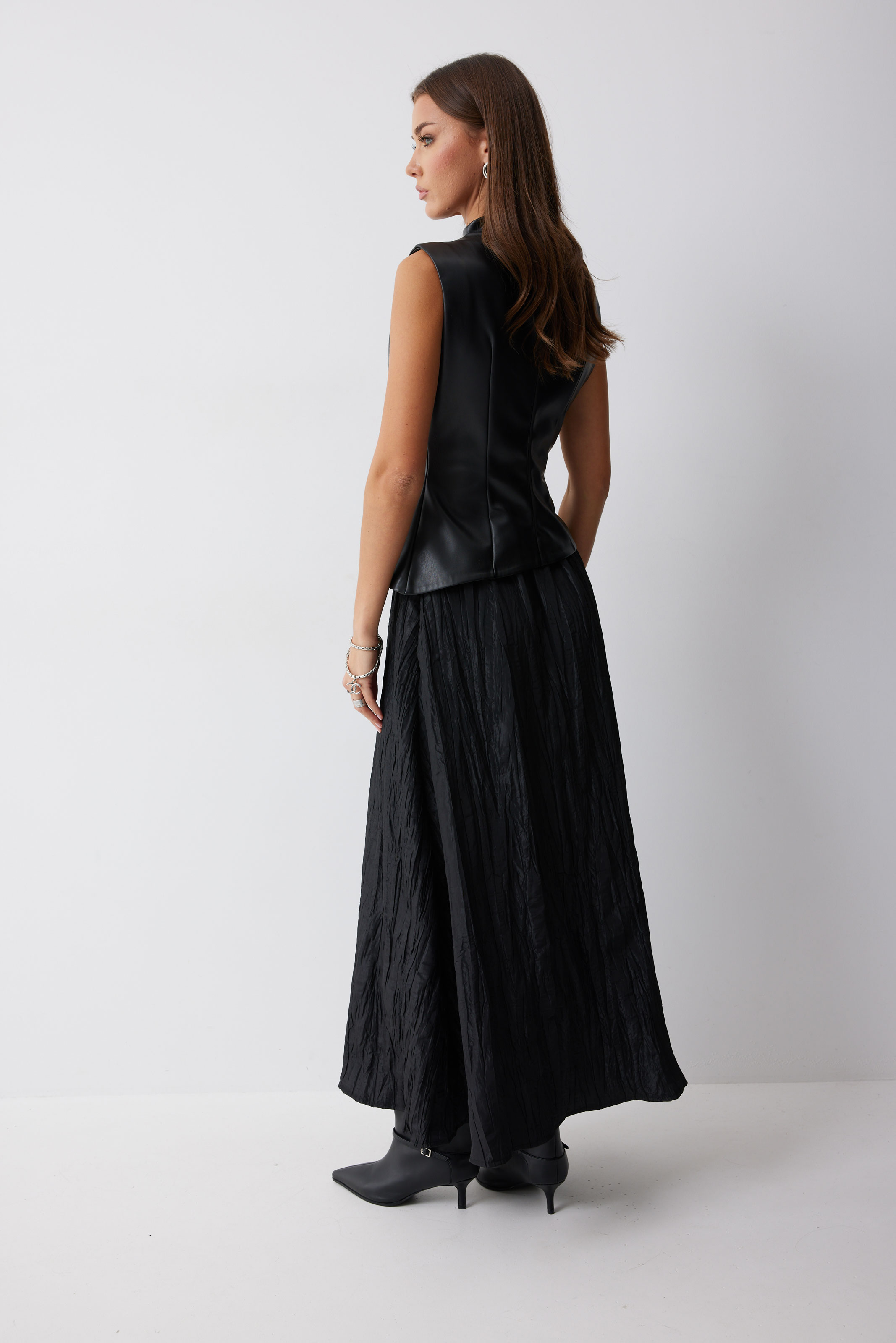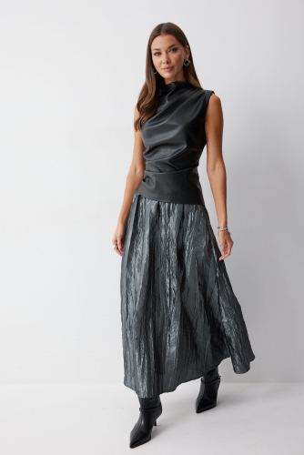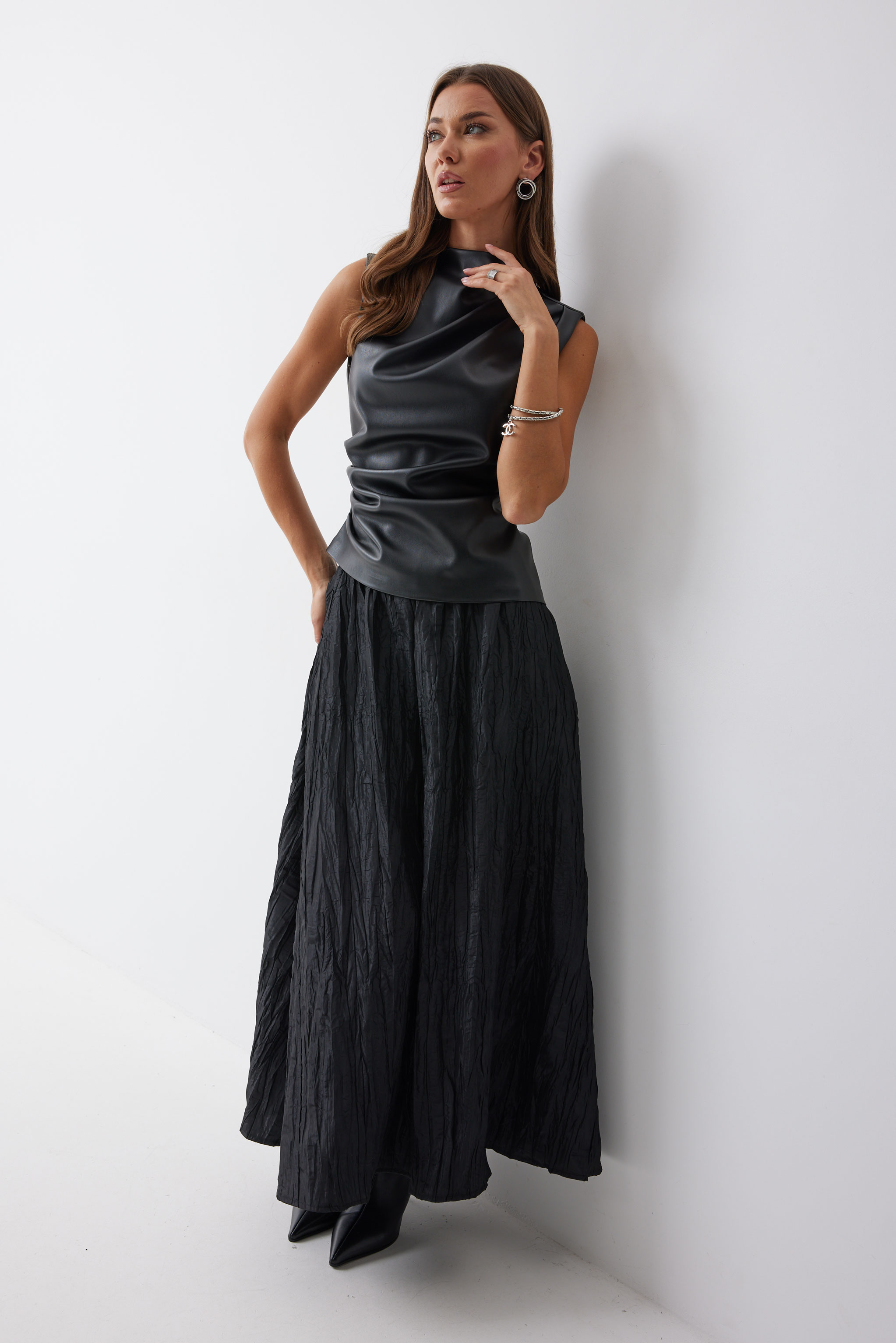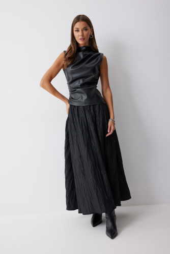 Юбка 4215 (черный) 2380 44-54 Юбка- полусолнце из жатой ткани, на притачном декоративном поясе (эластичной тесьме). Длина юбки (92+4см пояс)
