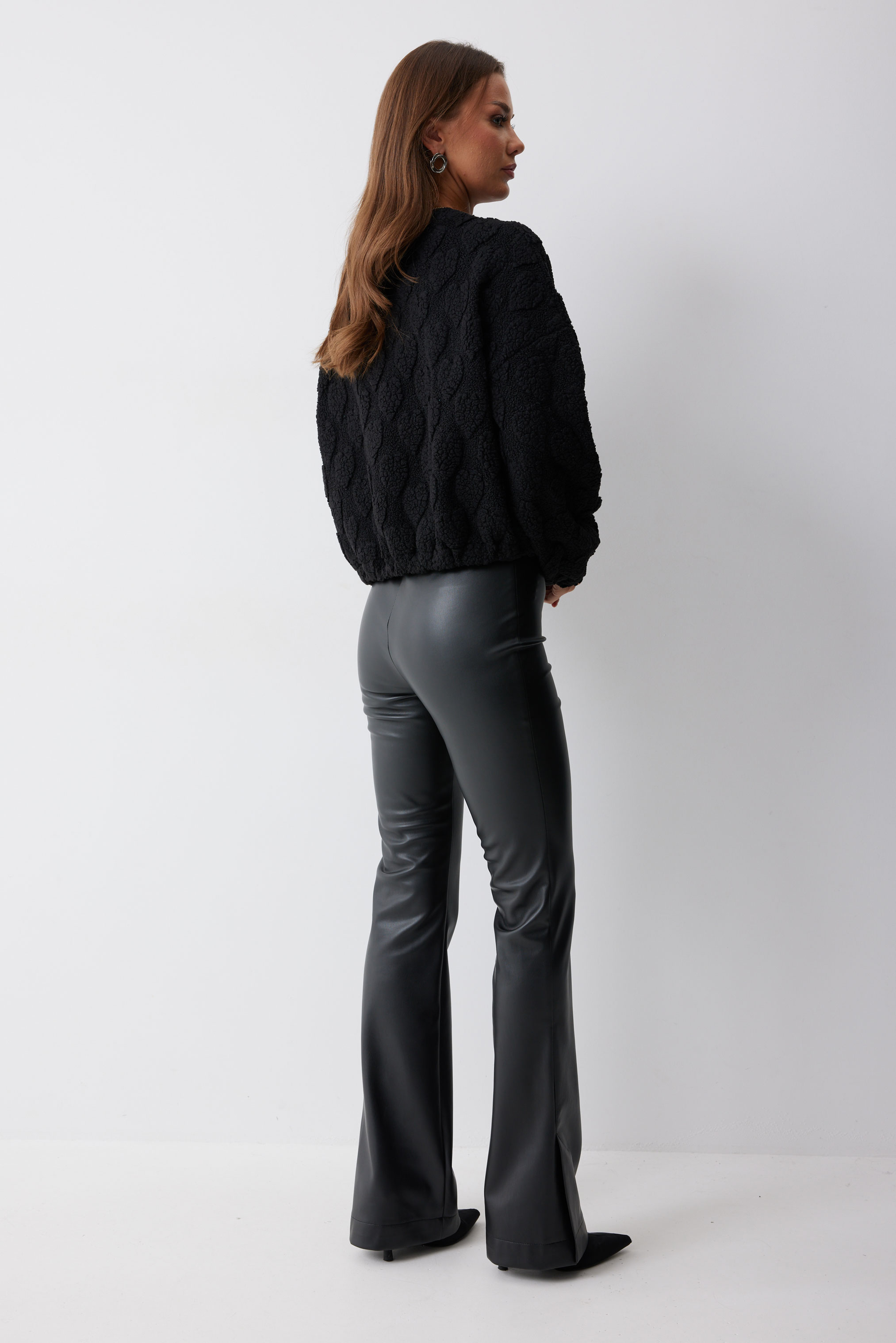 Джемпер 4226 (черный) 2210 44-54 Укороченный джемпер прямого силуэта из трикотажного полотна. Горловина округлая. Рукав со спущенной линией плеча, по низу резинка. По низу джемпера резинка. "Длина джемпера (44-48р – 52см)(50-54р - 60см)