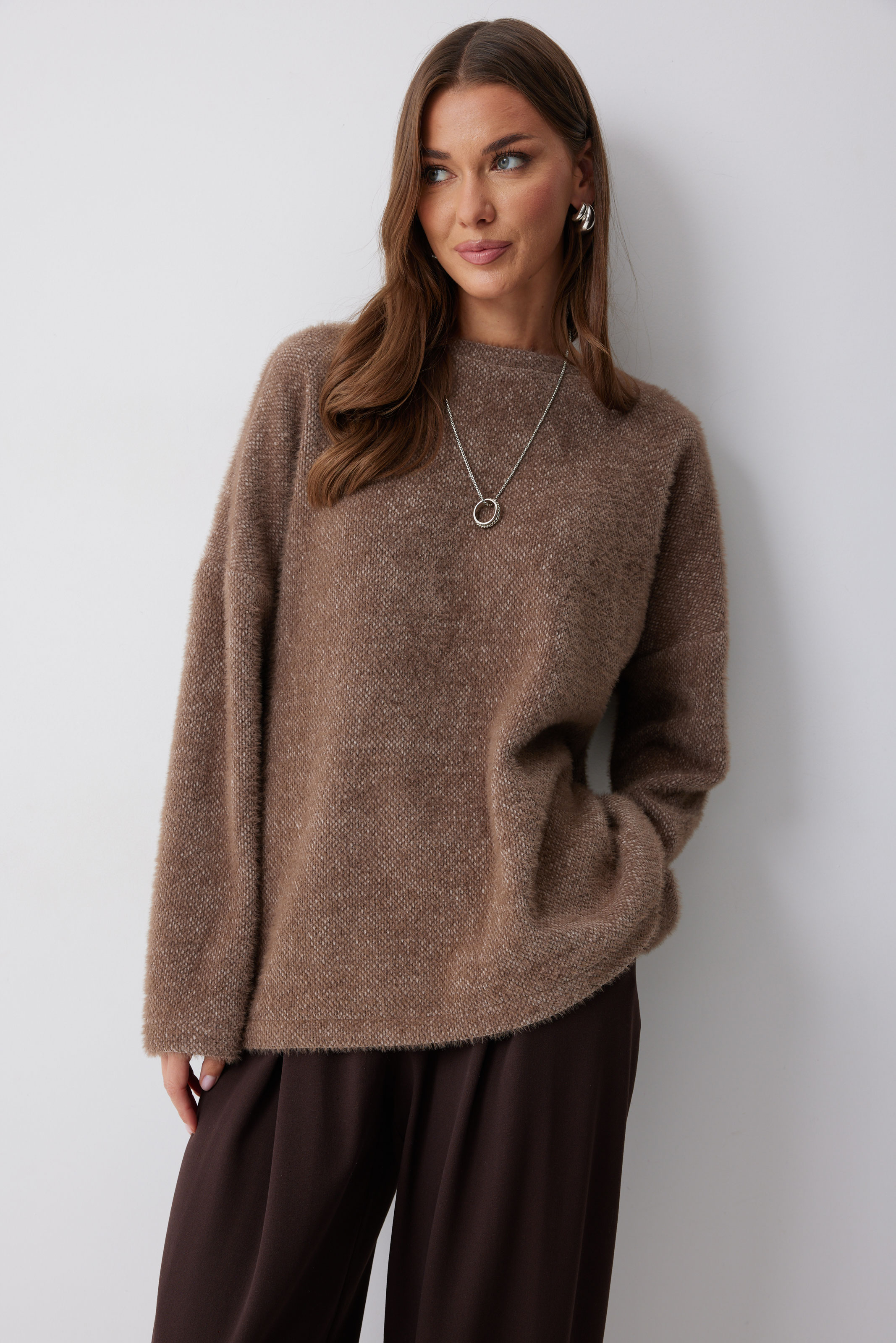 Джемпер 4231 (капучино) 2380 44-60 Джемпер прямого силуэта из трикотажного полотна. Горловина округлая. Рукав со спущенной линией плеча. "Длина (44-48р – 67см)(50-54р - 69см)(56-60р - 71см)