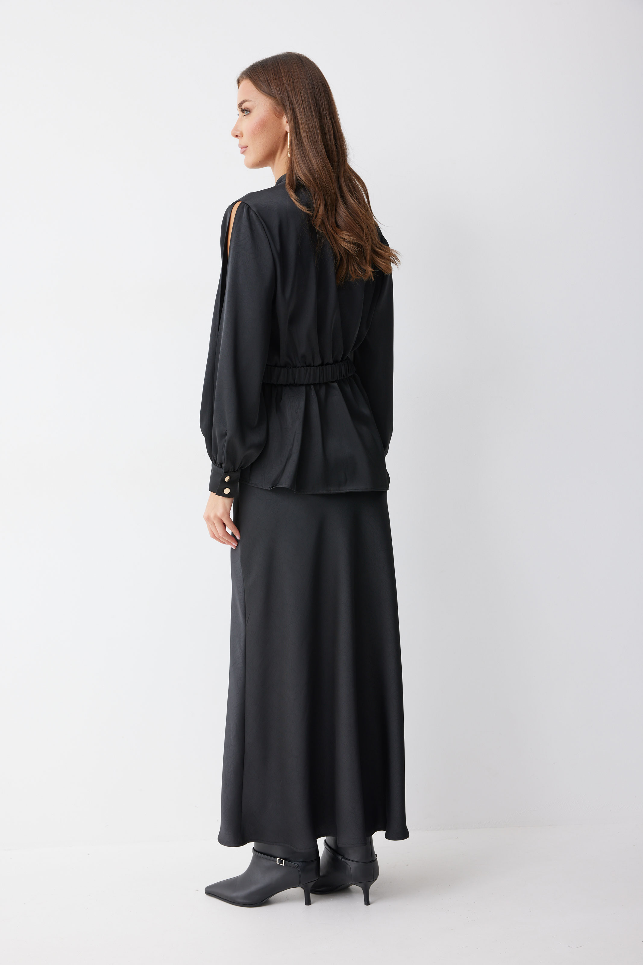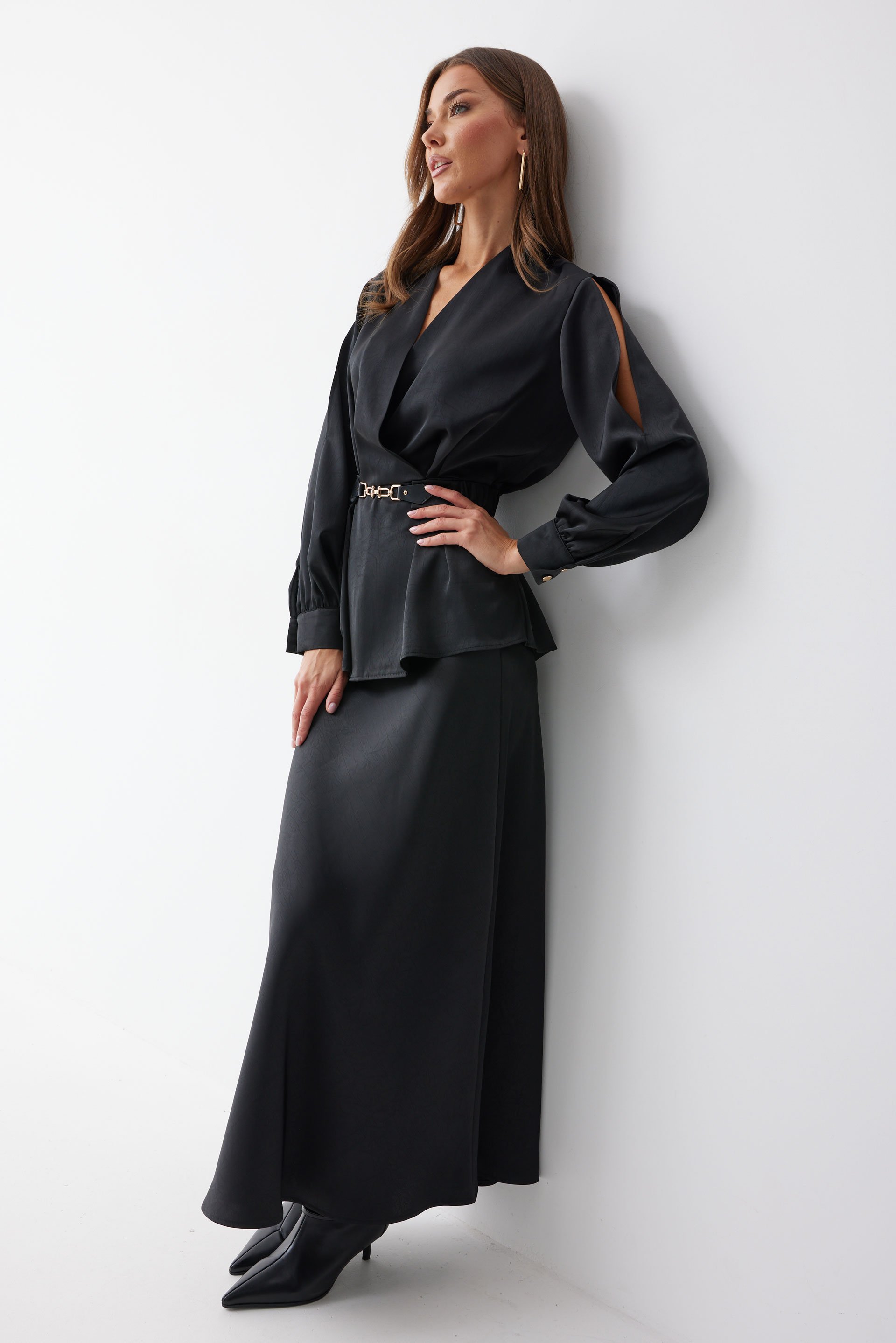 Юбка 4238 (черный) 2125 44-54 Юбка полуприлегающего силуэта расширенная книзу из струящейся ткани. Юбка с резинкой по линии талии. Длина юбки 101см