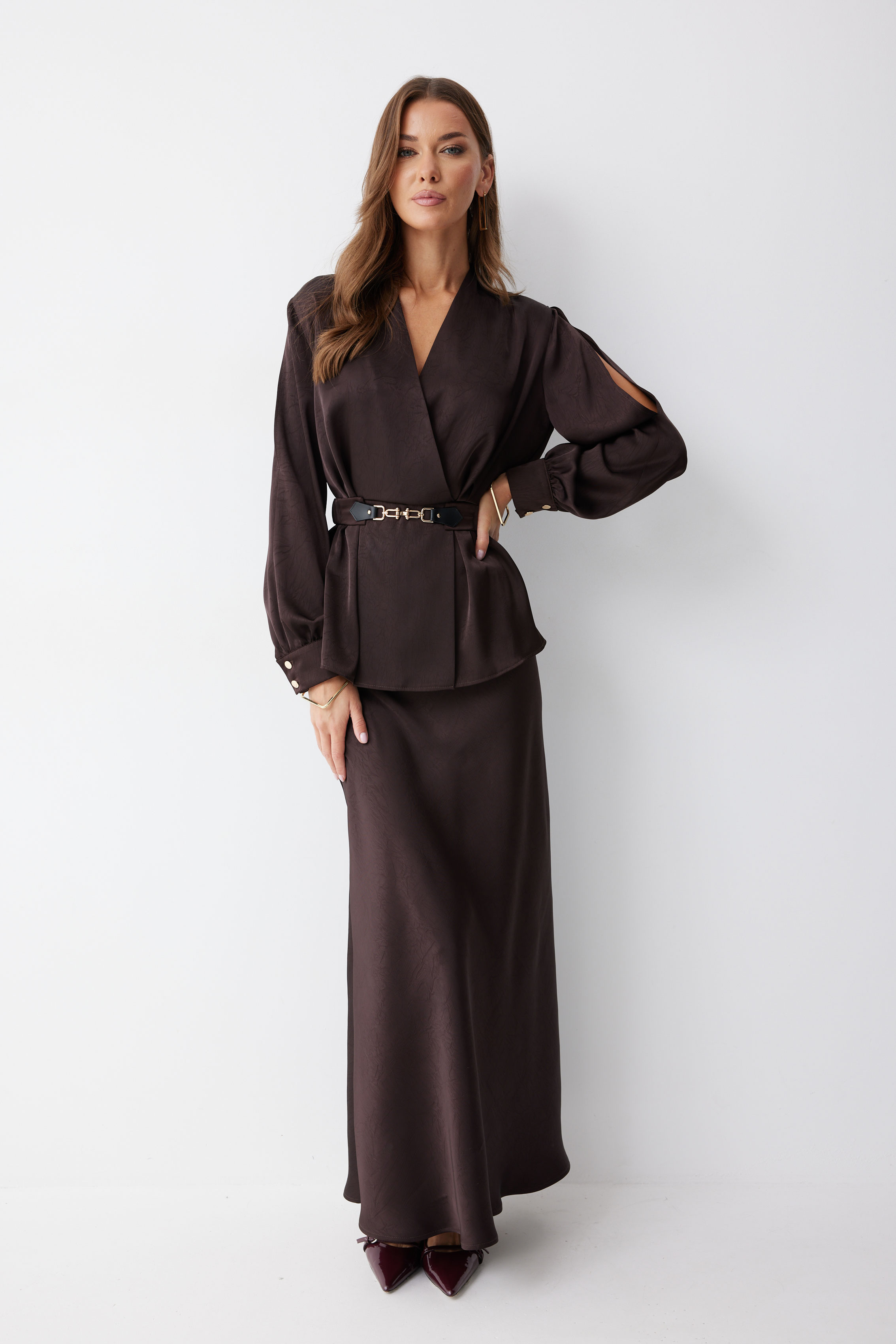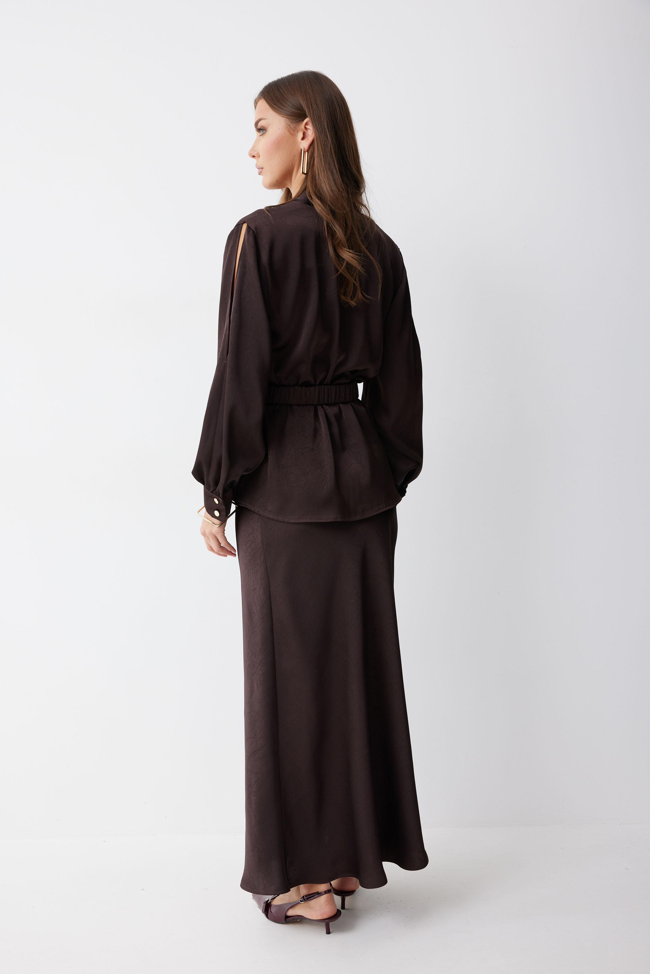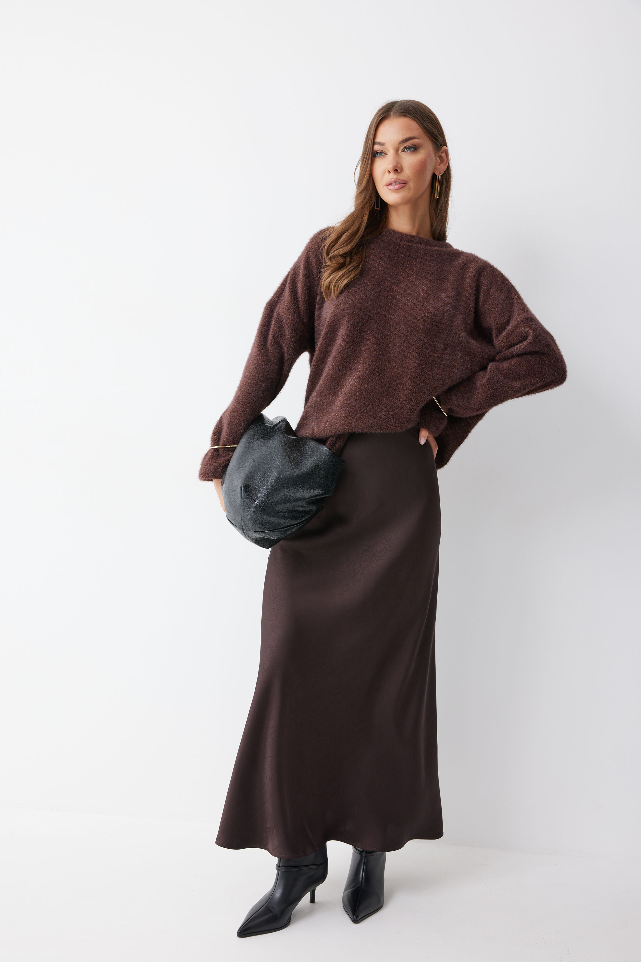 Юбка 4238 (коричневый) 2125 44-54 Юбка полуприлегающего силуэта расширенная книзу из струящейся ткани. Юбка с резинкой по линии талии. Длина юбки 101см