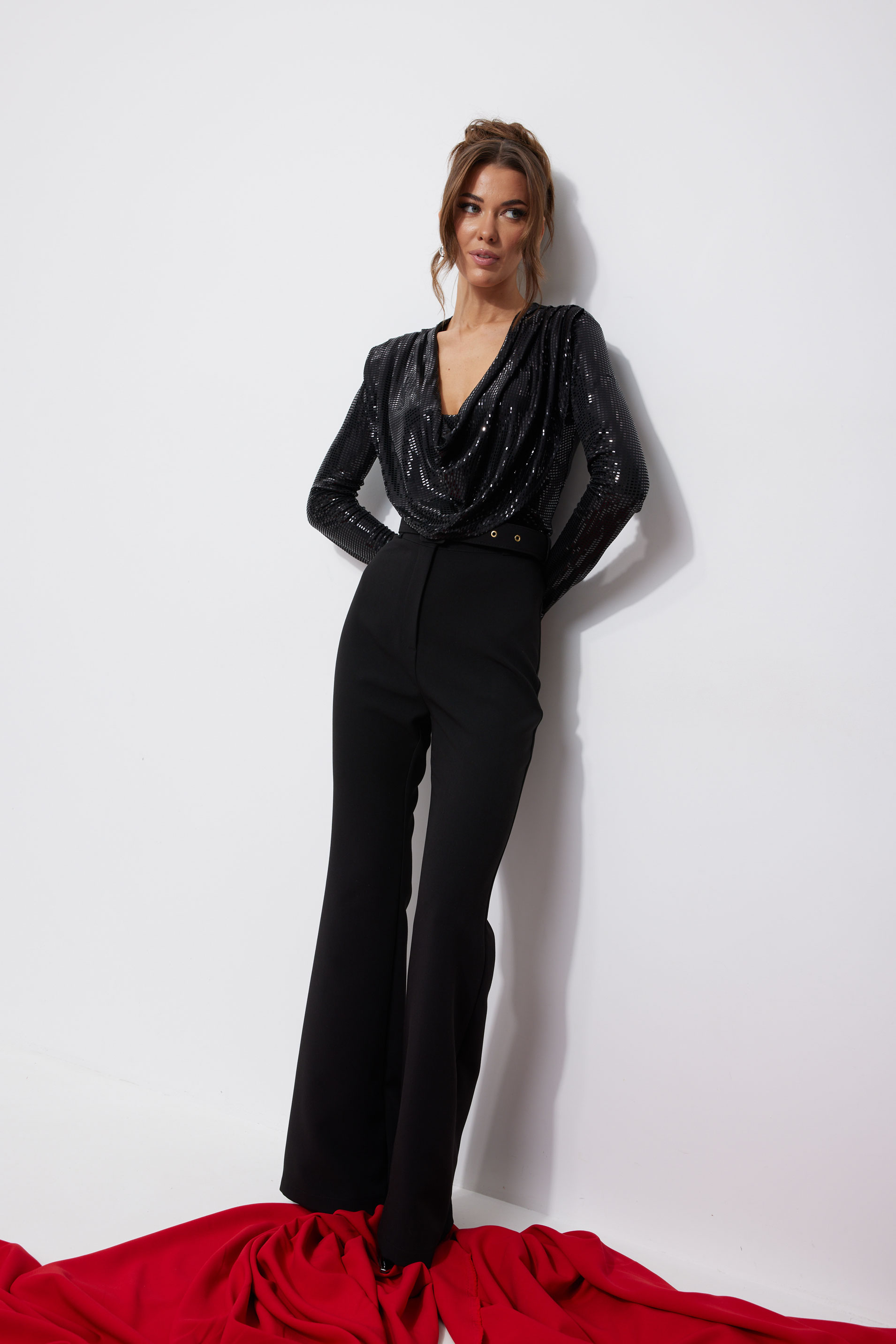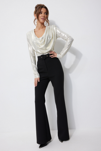 Блуза 4251 (черный) 2380 44-54 Блузка полуприлегающего силуэта из трикотажного полотна. По переду глубокий вырез и декоративная деталь ’качель’. Рукав втачной удлиненный. "Длина блузки (44-48р - 57см)(50-54р - 60см)