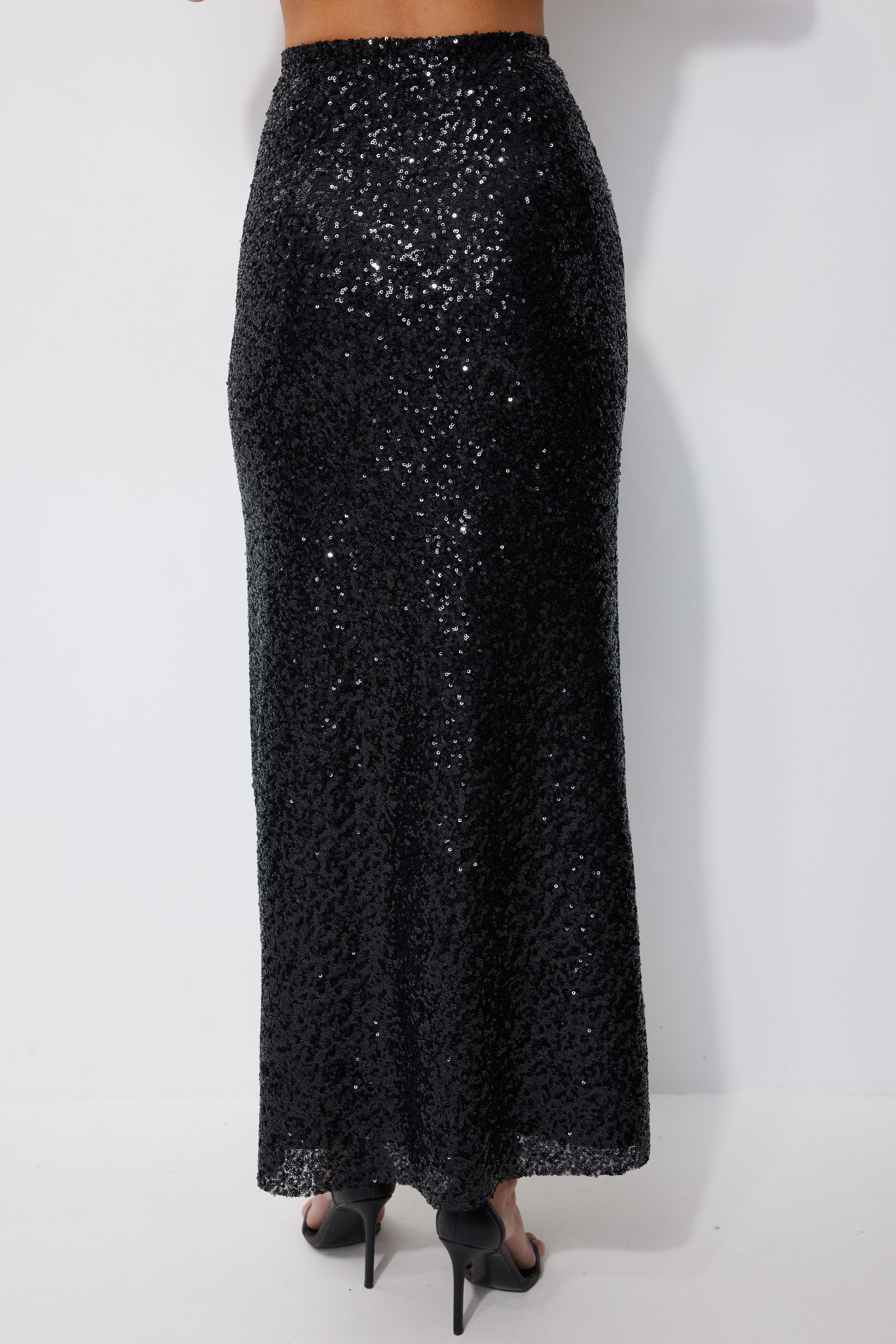 Юбка 4257 (черный) 3400 44-54 Юбка полуприлегающего силуэта расширенная книзу длиной макси из ткани с пайеткой. Юбка с резинкой по линии талии. Юбка на подкладке. Длина юбка 100 см (±3см.)