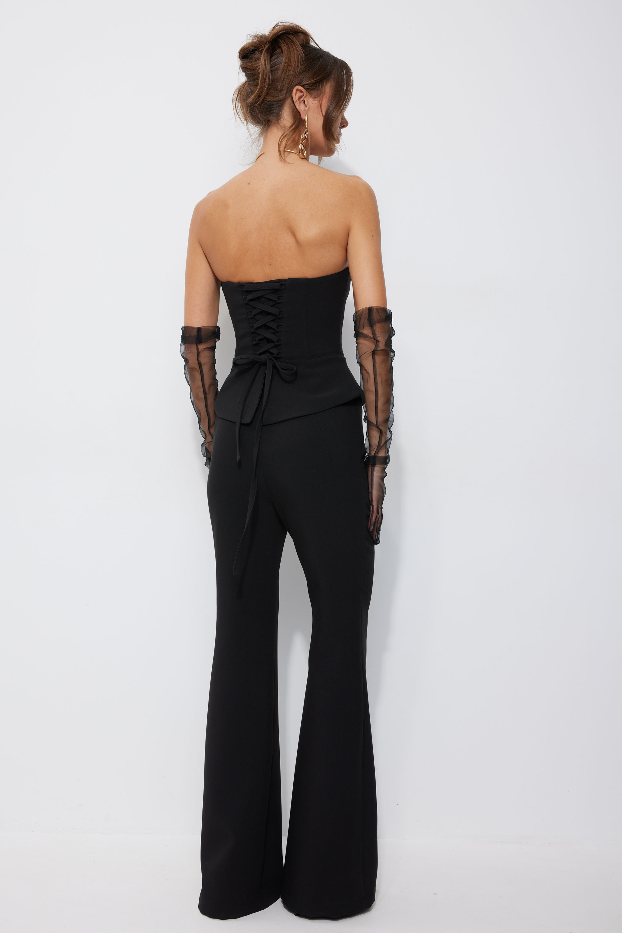 Блуза 4261 2890 44-48 Корсет прилегающего силуэта из костюмной ткани. По переду лифа фигурный вырез. По переду и спинке рельефы. Корсет отрезной по линии талии. На спинке декоративный элемент со шнуровкой корсетного типа для регулирования степени прилегания. Корсет на косточках с корсетными чашками. Корсет на подкладке. Длина блузы по спинке 30 см.