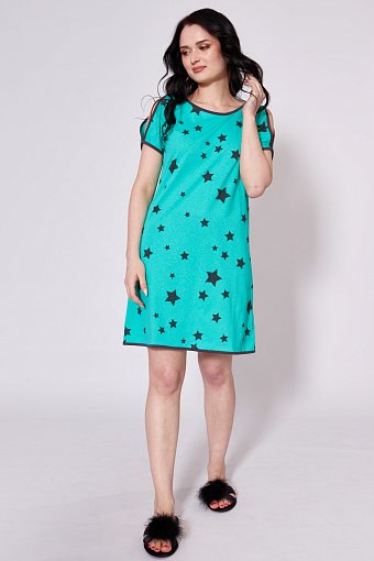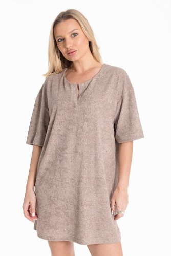 Туника выполнена из кулирки, 100% хлопок. Горловина круглая, на рукавах декоративные разрезы. Детали туники обработаны бейкой.