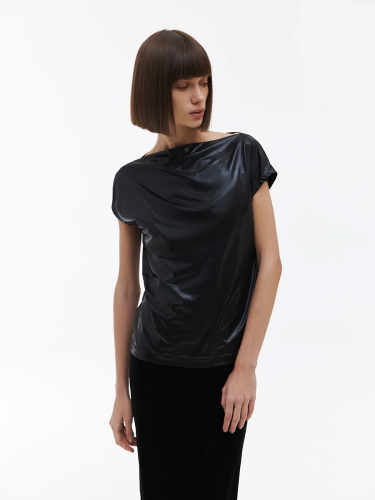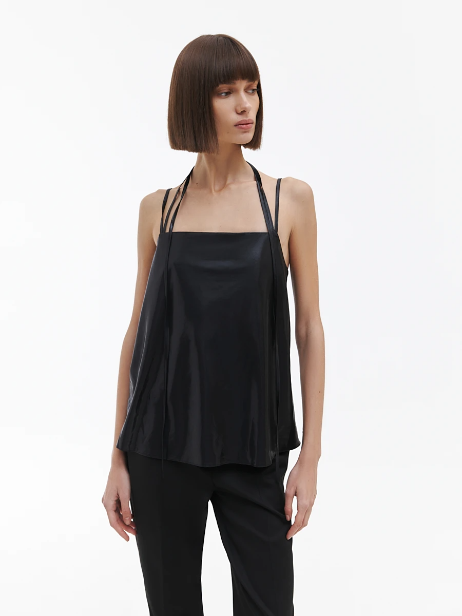 Блестящий топ на бретельках Черный 52.664.6900.701.1