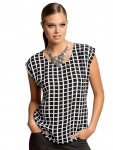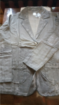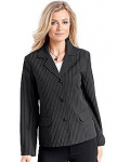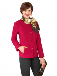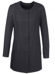 Длинный блейзер нового современного покроя с круглым вырезом и застежкой на пуговицы. Прострочка деталей подчеркивает талию. 2 вшитых кармана.