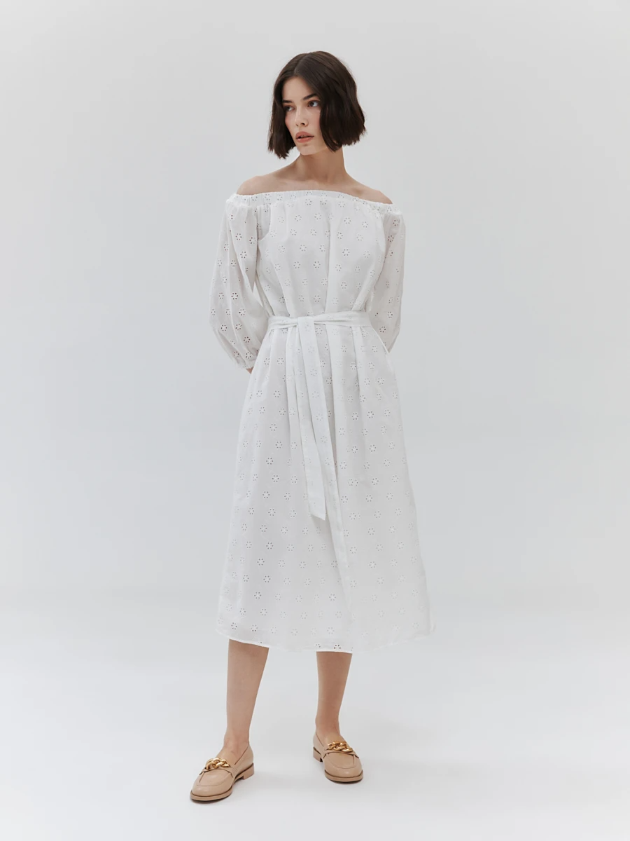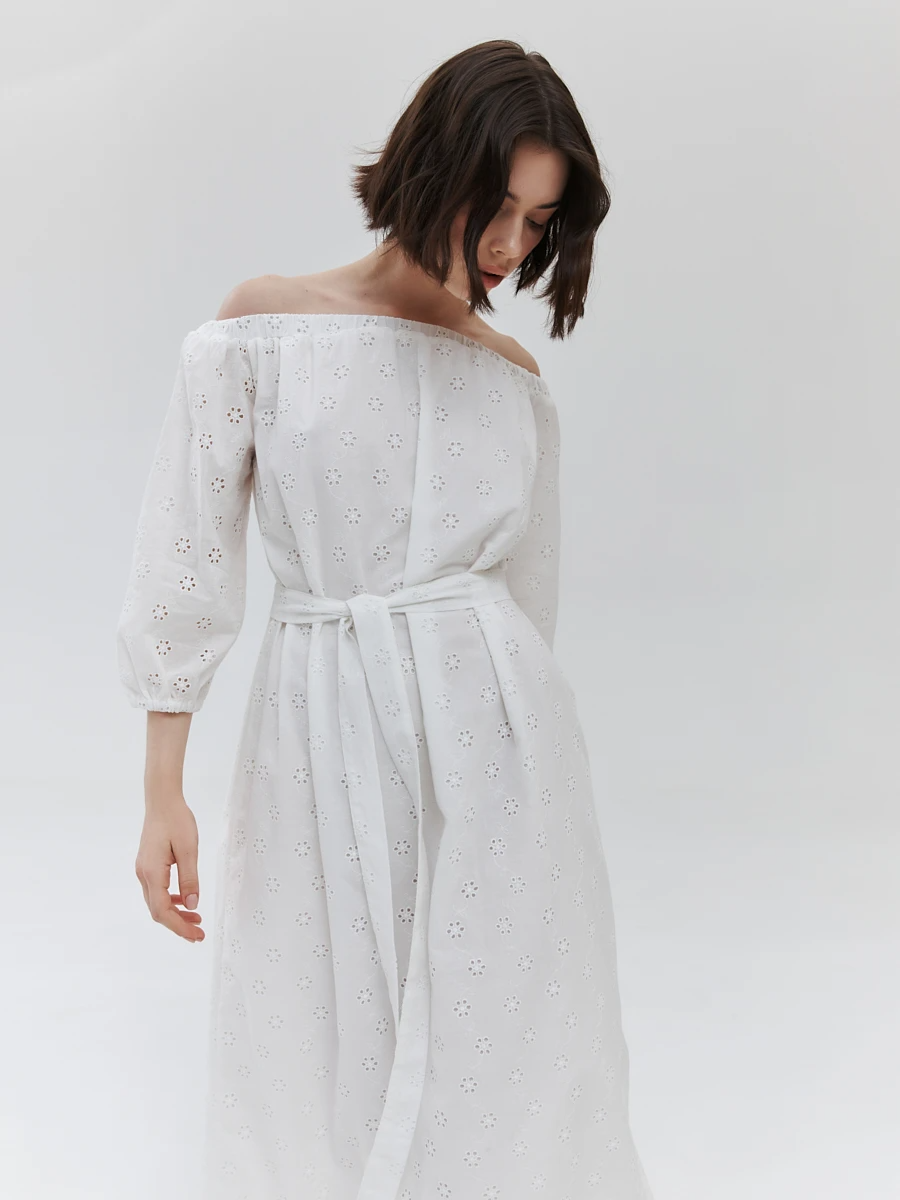 Платье с вышивкой "ришелье" Белый 60.939.9083.006.1