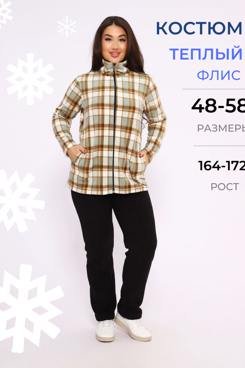 Утепленный флисовый костюм, идеально подходящий для холодной погоды. В комплект входит толстовка с воротником-стойкой на молнии и двумя карманами, выполненная из мягкого и теплого флиса с набивным рисунком, придающим изделию стильный и оригинальный вид. Дополняют образ черные однотонные теплые брюки, обеспечивающие комфорт и тепло в холодные дни. Этот комплект отлично подойдет для активного отдыха, прогулок или повседневной носки в холодное время года.