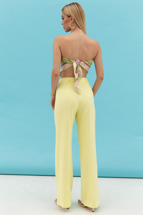 Брюки прямого силуэта, с разрезами в боковых швах из костюмной ткани. На передней части брюк застрочены стрелки. Притачной пояс со шлёвками. Застёжка на молнию-гульфик и пуговицу. Секрет такой модели кроется в безупречно точной посадке по талии и бедрам – ничего лишнего, только конструктивные детали, которые придают четкость линиям силуэта.