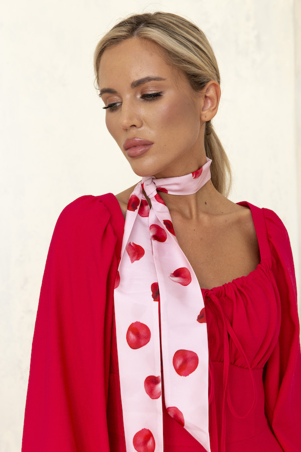 Лента двойная из лёгкой струящейся ткани с матовым блеском. Размер 138х6,5 см.