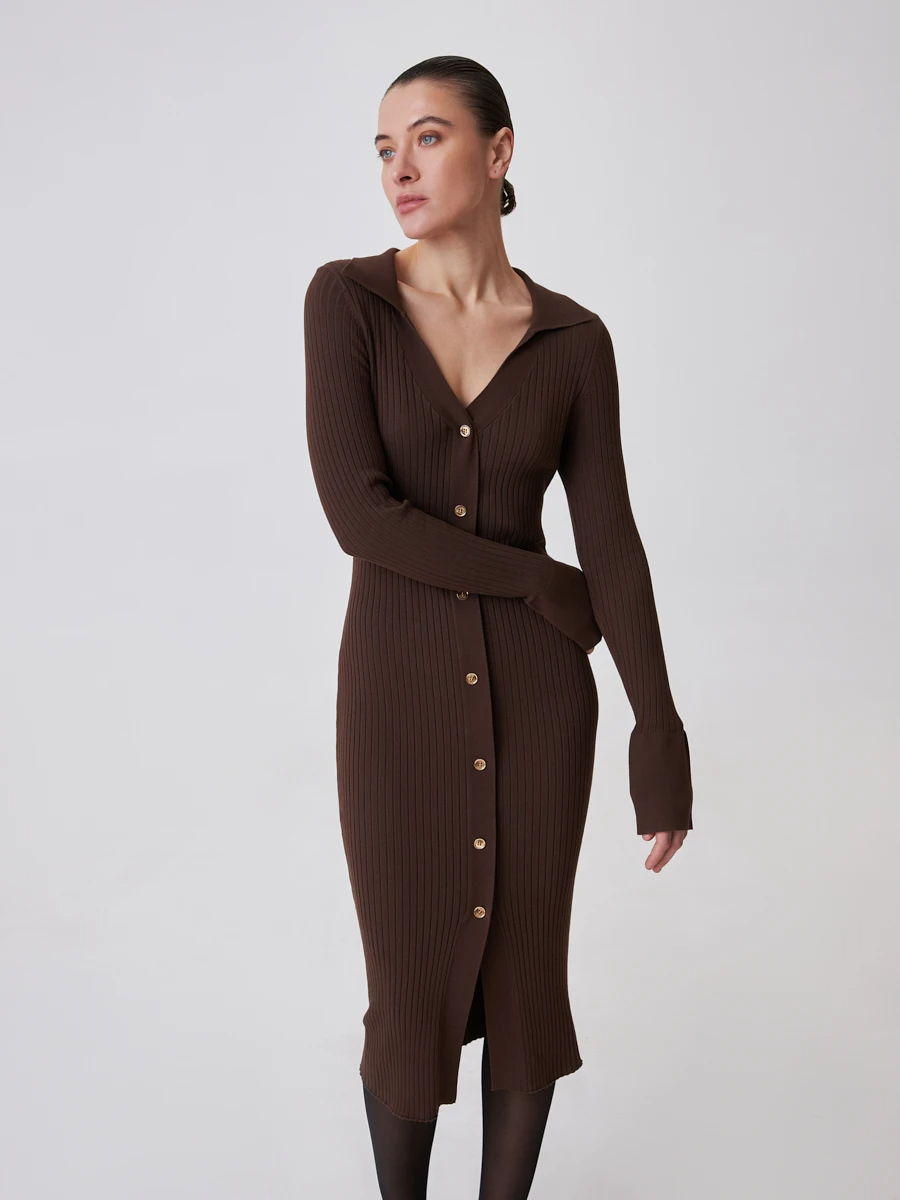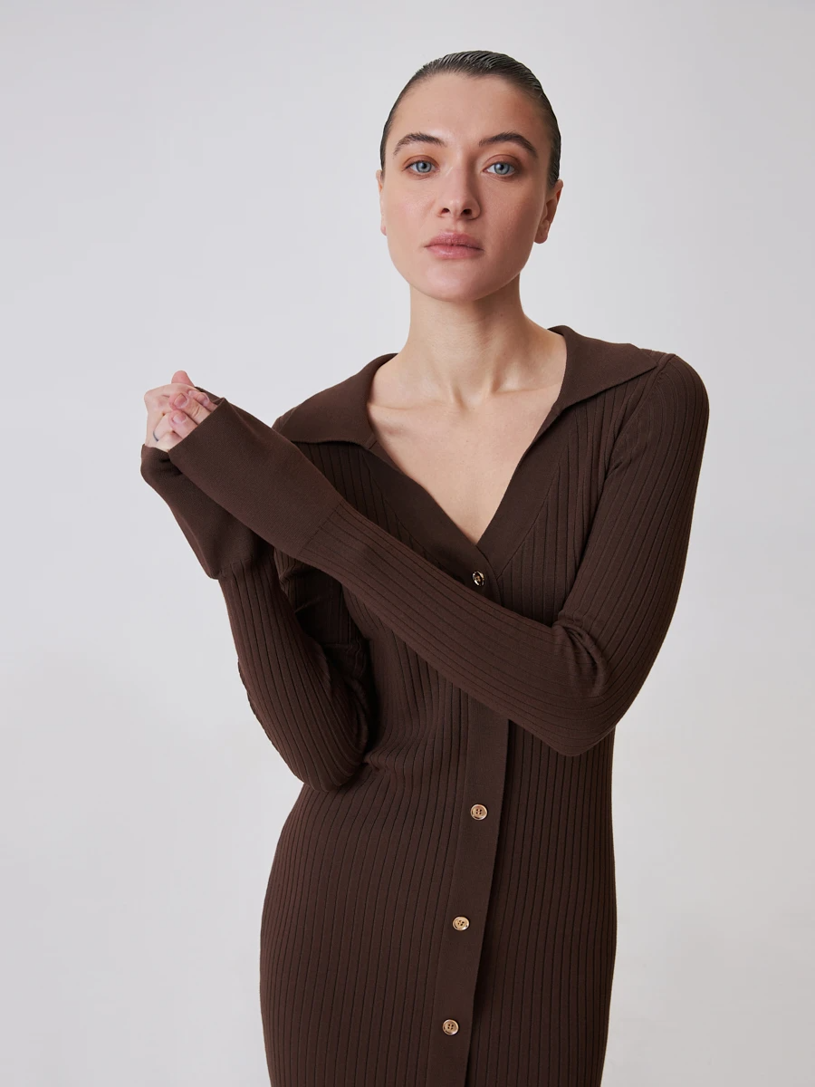Трикотажное платье с разрезом Шоколадный 67.014.6183.077.1