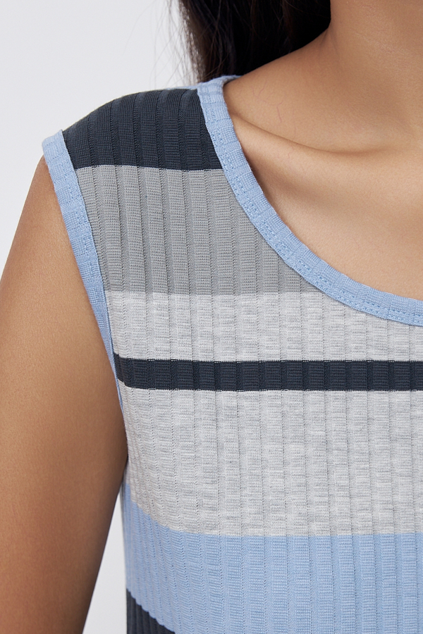 Тонкая вязка, классное сочетание полосок. С джинсовыми шортами смотрится очень органично. Не 48р (93-83) заказала 48. Село отлично, на мой вкус.