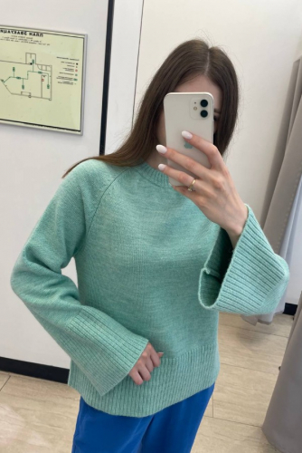 Джемпер из хлопкового эластичного полотна свободного силуэта. Втачной короткий рукав. Круглый вырез горловины оформлен бейкой.
