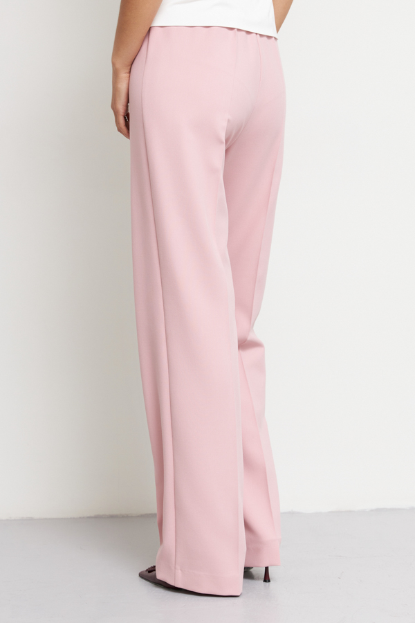 Брюки прямого силуэта из костюмной ткани. Пояс притачной с эластичной резиной.