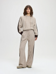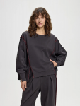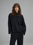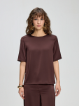 Футболка удачно сочетается как с джинсами, так и с более строгими брюками или юбками, позволяя создавать лаконичные, но эффектные образы. Благодаря полупрозрачной текстуре и деликатному блеску ткань смотрится особенно утончённо — модель подойдёт как для повседневной носки, так и для особого случая. Идеальный выбор для тех, кто ценит сдержанную элегантность и современную эстетику.