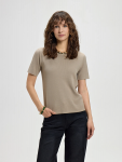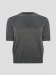 Женская трикотажная футболка выполнена в светло-сером оттенке с легким мерцанием, которое придаёт образу элегантности. Мягкий, эластичный материал из полиэстера и спандекса идеально облегает фигуру, подчёркивая силуэт, а короткие рукава и классический круглый вырез делают модель универсальной для повседневных и вечерних образов. Полуприлегающий крой обеспечивает комфортную посадку и свободу движений.