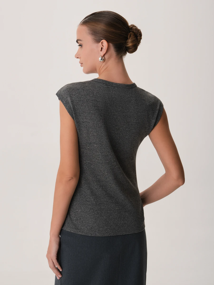 Топ отлично сочетается как с классическими брюками, так и с джинсами или юбками, подчеркивая минимализм и элегантность стиля. Серый оттенок делает модель подходящей как для летнего, так и для осеннего сезонов, а благодаря качественному составу изделие долго сохраняет форму и цвет. Идеальный выбор на каждый день — будь то офис, прогулка или встреча в городе.