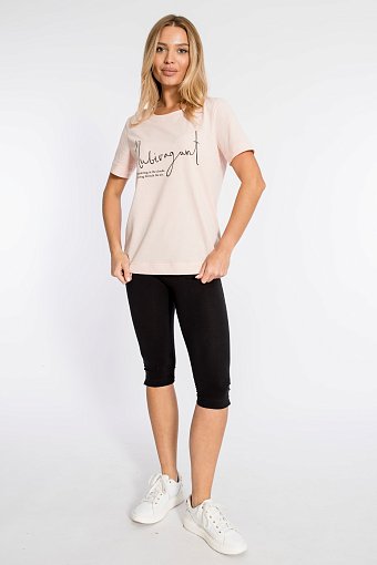 Футболка из однотонной кулирки, 100% хлопок. С коротким втачным рукавом и притачной планкой по круглому вырезу горловины. Спереди нанесён принт.
