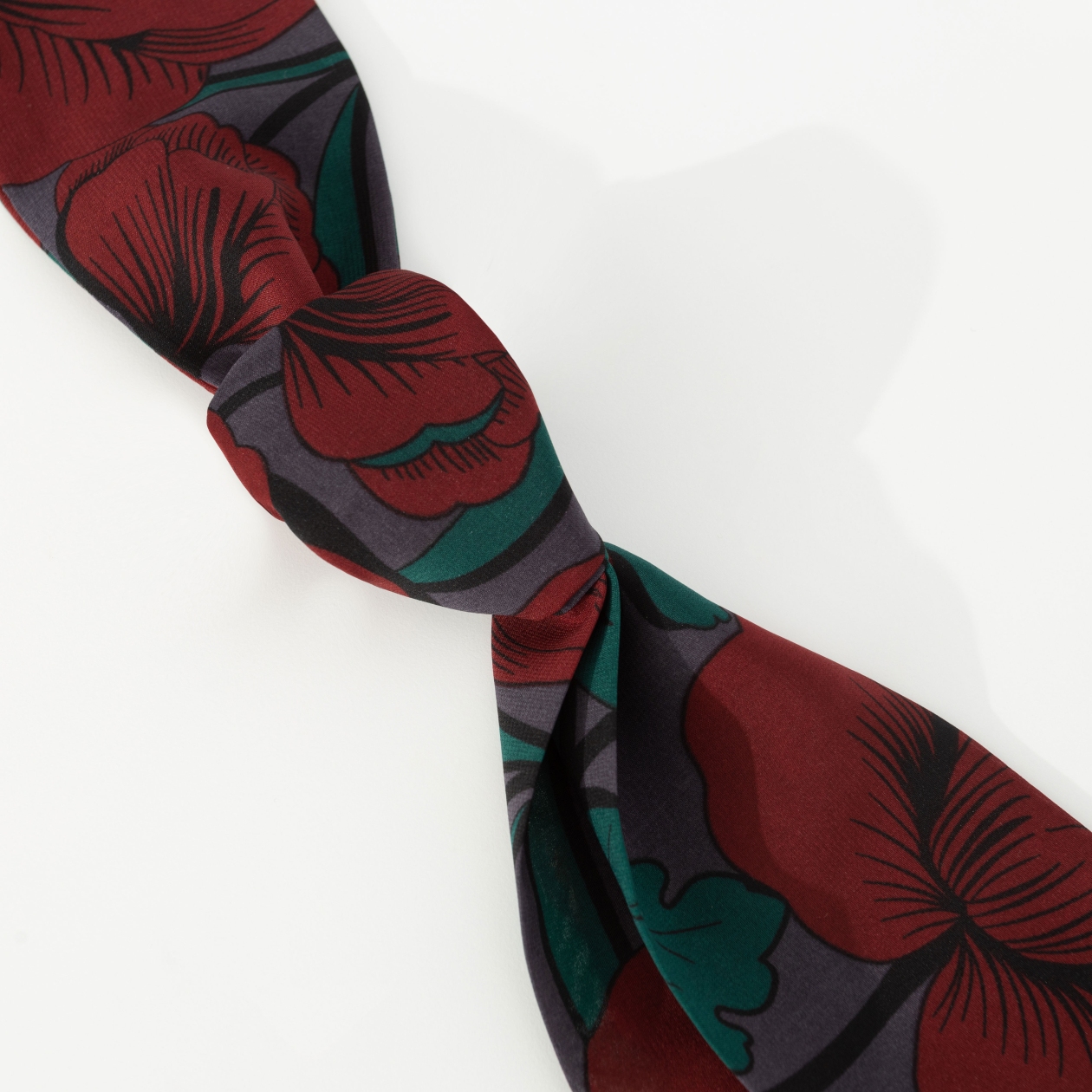 Насыщенный бордовый цветок на тёмном фоне делает эту ленту идеальной спутницей базовых свитеров и платьев. Носи её как тонкий шарфик, выпуская концы, или вплетай в косу – так даже самый простой повседневный образ получает богемный штрих. Удлинённая форма позволяет завязывать ленту вокруг шеи, пояса, запястья или использовать как акцентный ремешок. Ну а если захочется... «забудь» ненароком этот волшебный аксессуар рядом с приглянувшимся мужчиной. Чем не повод для знакомства?