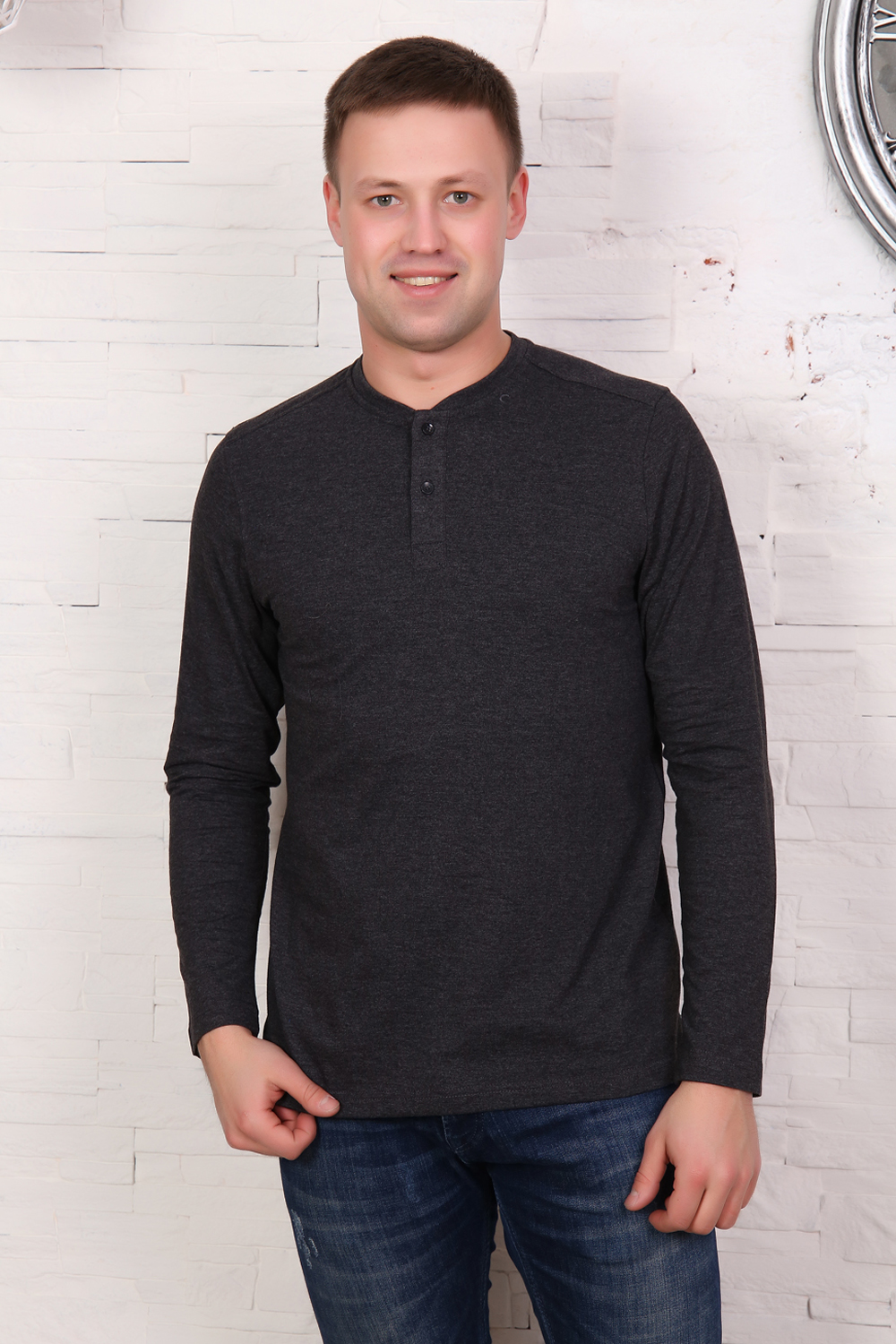 Футболка мужская полуприталенного силуэта, с длинным рукавом. Рукав притачной. Воротник на манжете, планка с пуговицами.