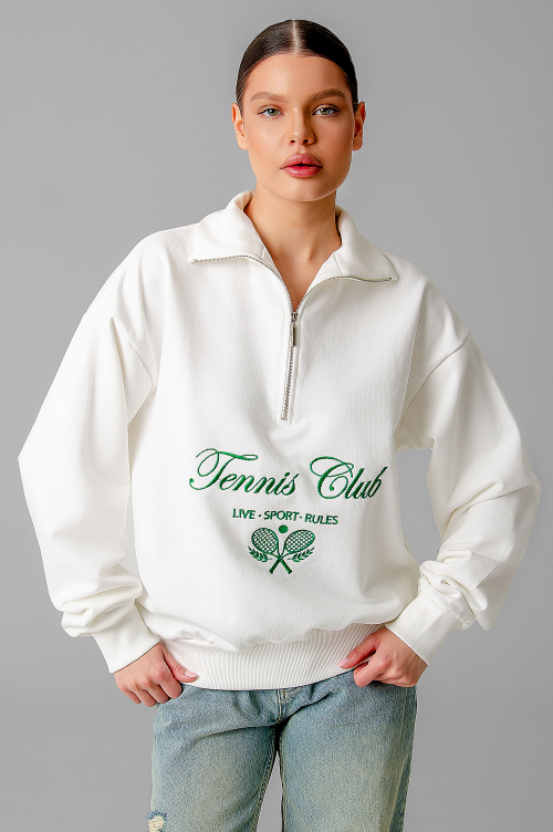 Свитшот женский полузамок, выполнен из качественного полотна футера трехнитки. Содержание хлопка не менее 97%.