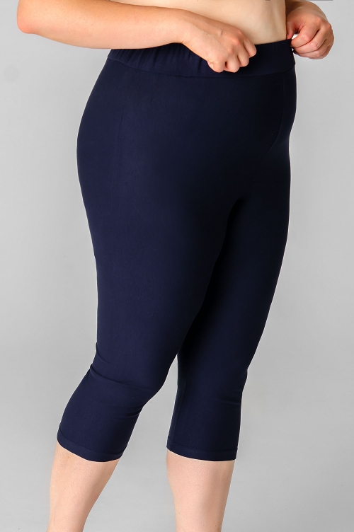 Лосины-бриджи ниже колена женские большого размера, выполнены из качественного полотна вискоза. Содержание хлопка не менее 50%.