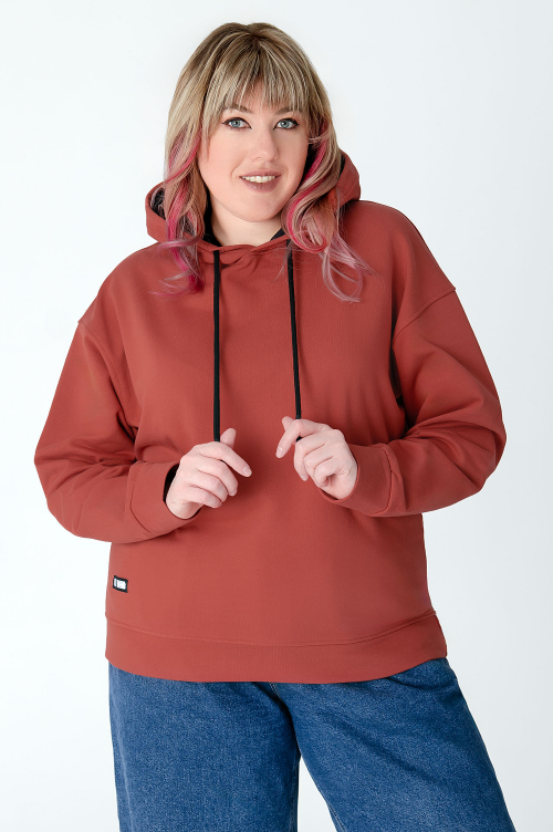 Толстовка женская большого размера , выполнена из футера трехнитки. Содержание хлопка в полотне не менее 97%: