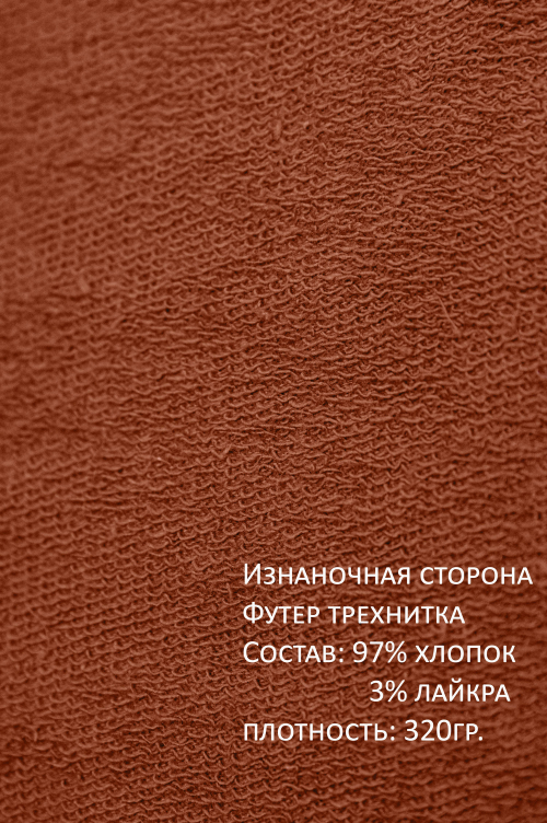 - двойной капюшон. Изнанка капюшона обработана кулирной гладью ( состав 100 % хлопок) в цвет основного полотна;