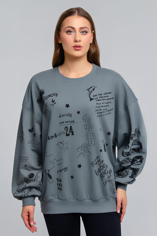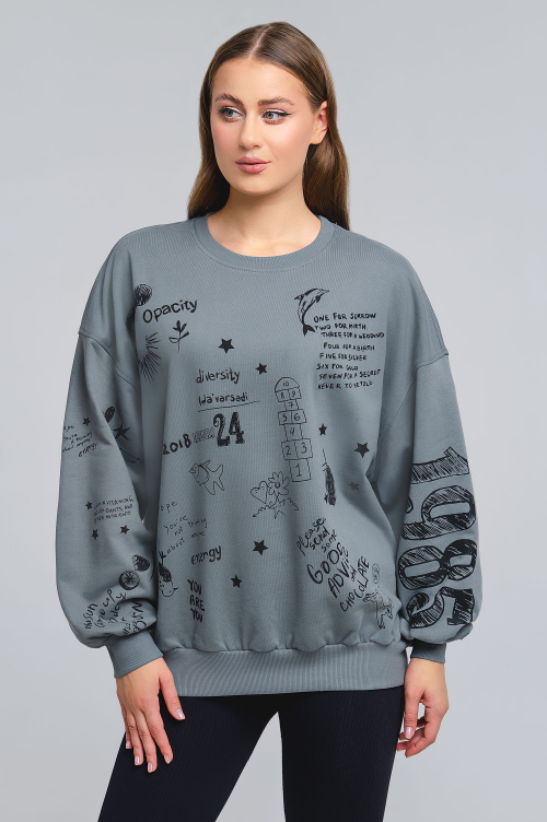 Свитшот женский (oversize), выполнен из качественного полотна футер трехнитка. Содержание хлопка не менее 97%. Плотность полотна - 320 гр.