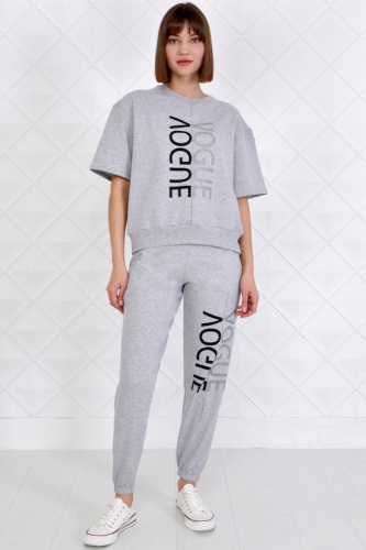 Костюм женский, выполнен из футера двухнитки, содержание хлопка не менее 75%, плотностью 250 г.
