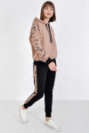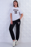 Костюм женский, выполнен из футера двухнитки "Пенье". Содержание хлопка не менее 75%. Плотность полотна - 250 гр.