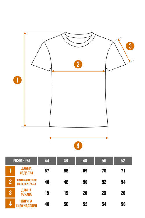 Женская футболка выполнена из качественного 100% хлопка. Плотность полотна 180 гр.