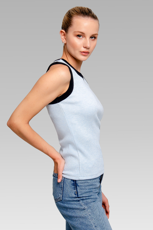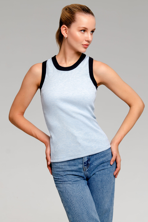 Майка женская, выполнена из плотной рибаны. Плотность полотна 180г.