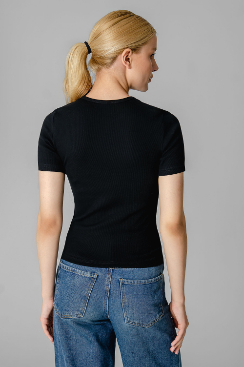 - вырез горловины округлый, обработан бейкой из рибаны;