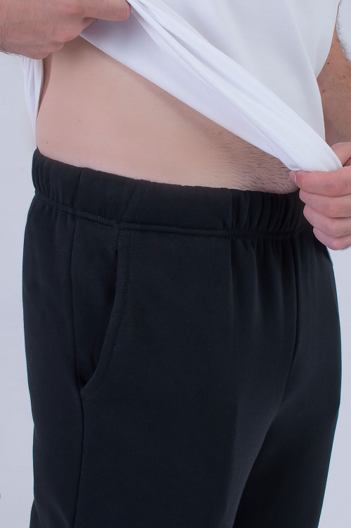Мужские брюки выполнены из футера с начесом плотностью 300 г.