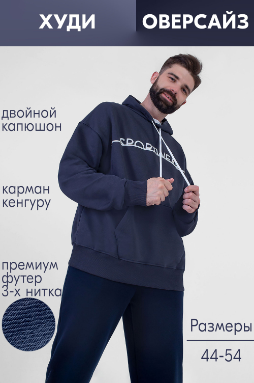 Толстовка мужская  выполнена  из футера трехнитки петли, плотность полотна 320 г.