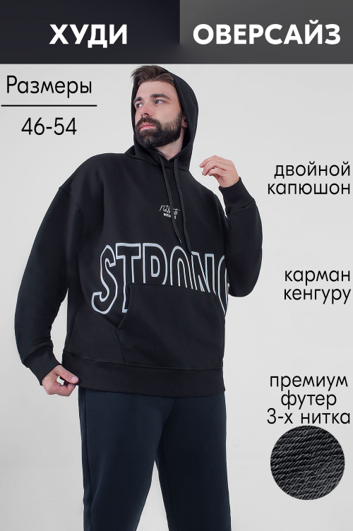 Толстовка мужская выполнена из футера трехнитки петли, плотность полотна 320 г.