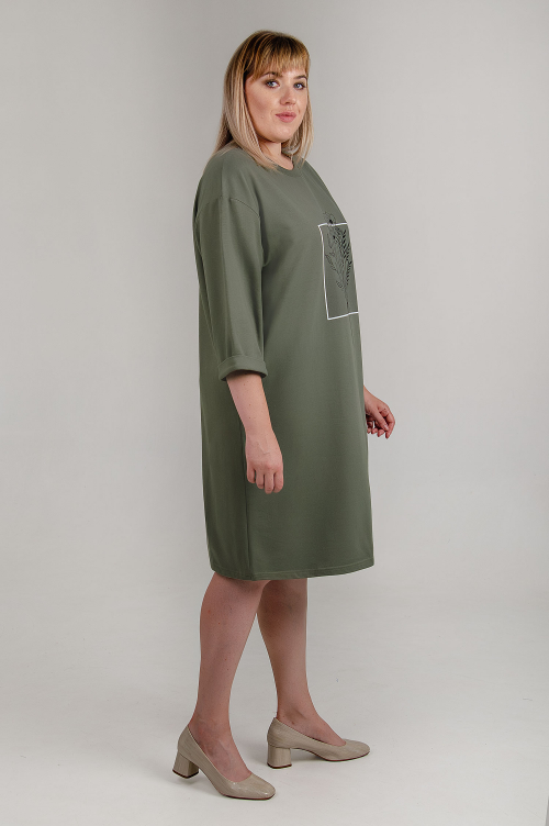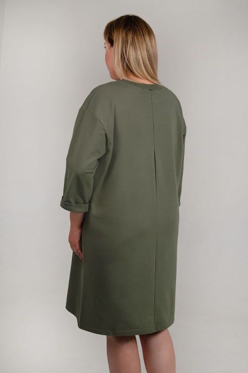 Женское повседневное платье большого размера выполнено из качественного полотна футер двухнитка. Содержание хлопка 100 %.