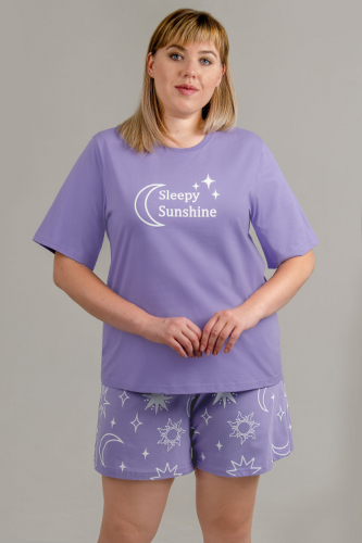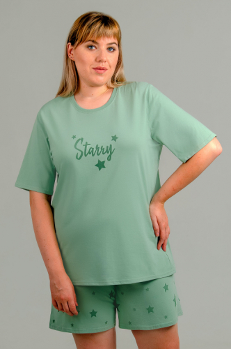 Женский пижамный комплект с шортами большого размера, выполнен из 100% хлопка. Полотно - кулирная гладь.
