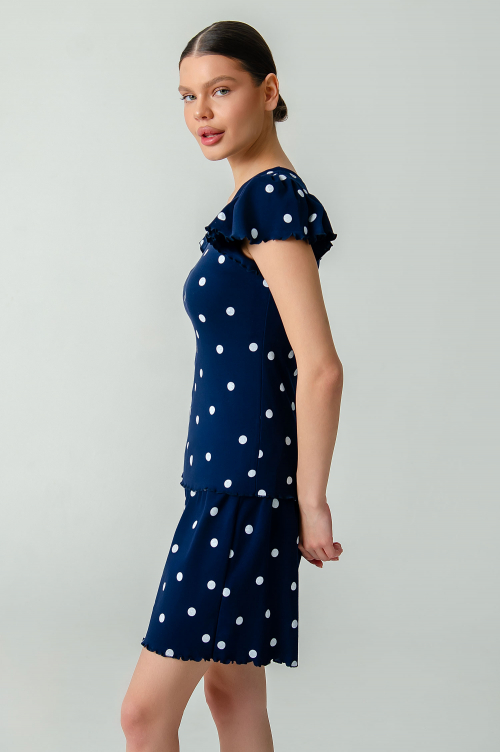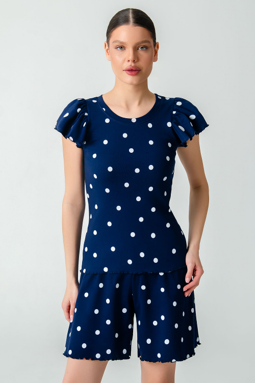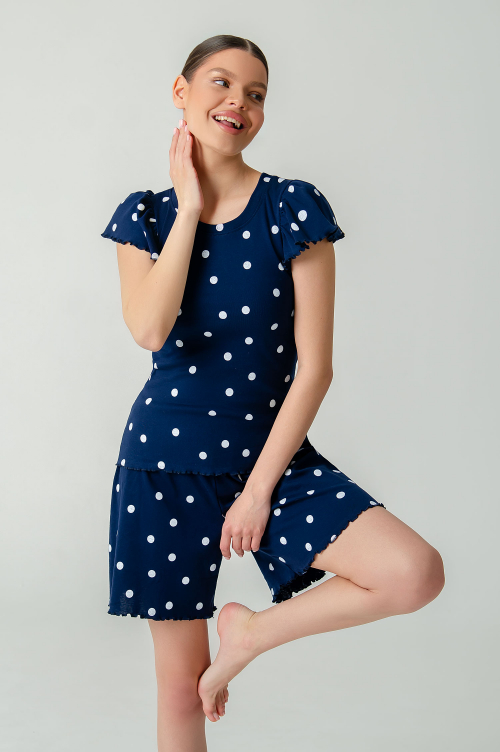 Женский пижамный комплект с шортами. Выполнен из качественного полотна рибана  «Пенье». 100% содержание хлопка..