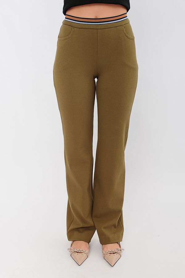 Комфортная модель брюк из трикотажного вельвета. Детали: спереди карманы с горизонтальным входом, сзади кокетка. Комбинированный пояс на цветной резине. Длина по внутреннему шву -  83,5 см. Ширина по линии низа -  23 см. *Числовые параметры соответствуют размеру 44. Размер модели на фото: 44. Параметры модели: 86-63-94. Рост модели на фото: 173 см.
