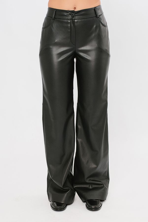 Модный силуэт-клеш от середины бедра. Детали: спереди застежка на молнию и пуговицу, карманы с горизонтальным входом. Фигурный пояс со шлевками, по спинке пояса резина на сборке. По задней половине брюк горизонтальные резы выше уровня колена. Длина по внутреннему шву-86 см. Ширина низа- 29 см. "числовые параметры соответствуют размеру 44.  размер модели на фото 44. Параметры модели: 86-63-94. Рост модели на фото: 173 см.