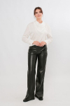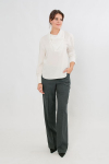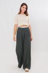 Модель брюк из темно-серой костюмной ткани в городском стиле. Спереди застежка на молнию и пуговицу, боковые карманы , сзади по правой стороне листочка с имитацией кармана. По передней половинке фигурный пояс, по задней половинке в поясе эластичная лента на сборке. В боковом шве разрез. Длина по внутреннему шву - 74 см. Ширина низа - 18,5 см. *Числовые параметры соответствуют размеру 44. Размер модели на фото: 44. Параы модели: 86-63-94. Рост модели на фото: 173 см.