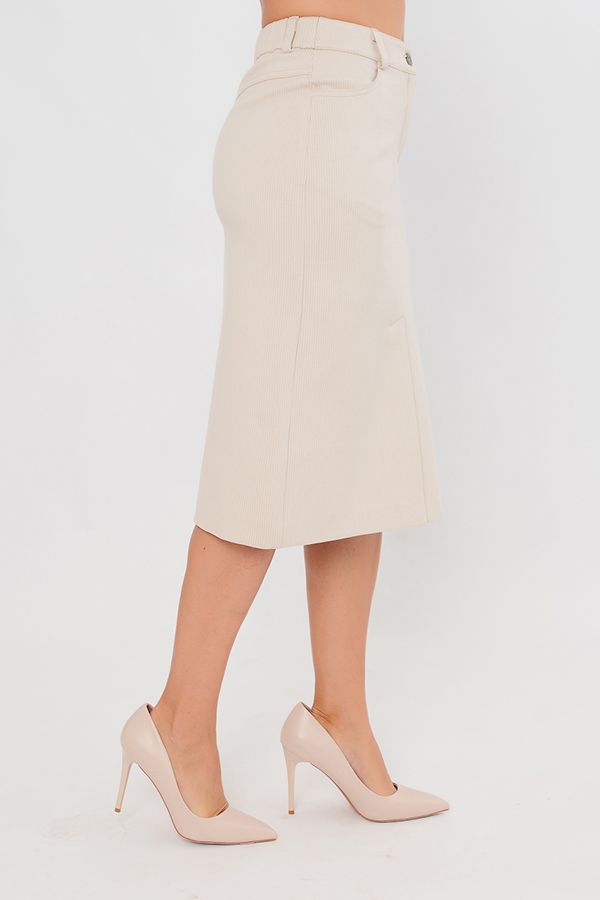 Современная молодежная юбка из трикотажного полотна под "вельвет". Детали: Спереди застежка на молнию и пуговицу, карманы с горизонтальным входом, в среднем шве шлица. Сзади кокетка с двойной отстрочкой. В поясе по спинке резина, на поясе шлевки. Длина изделия 68 см. Размер модели на фото: 44.  Параметры модели: 86-63-94. Рост модели на фото: 173 см.