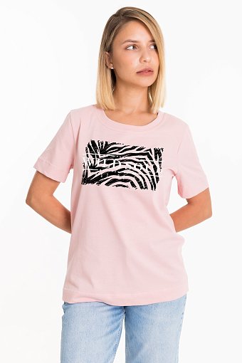 Футболка из однотонной кулирки, 100% хлопок. С коротким втачным рукавом и притачной планкой по горловине. Спереди нанесён принт.