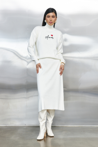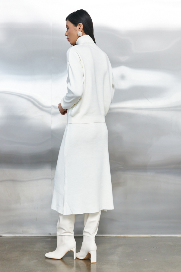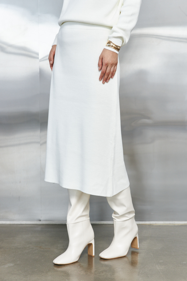 Юбка, расширенная книзу с эластичным поясом. Изделие выполнено из мягкой структурированной пряжи.