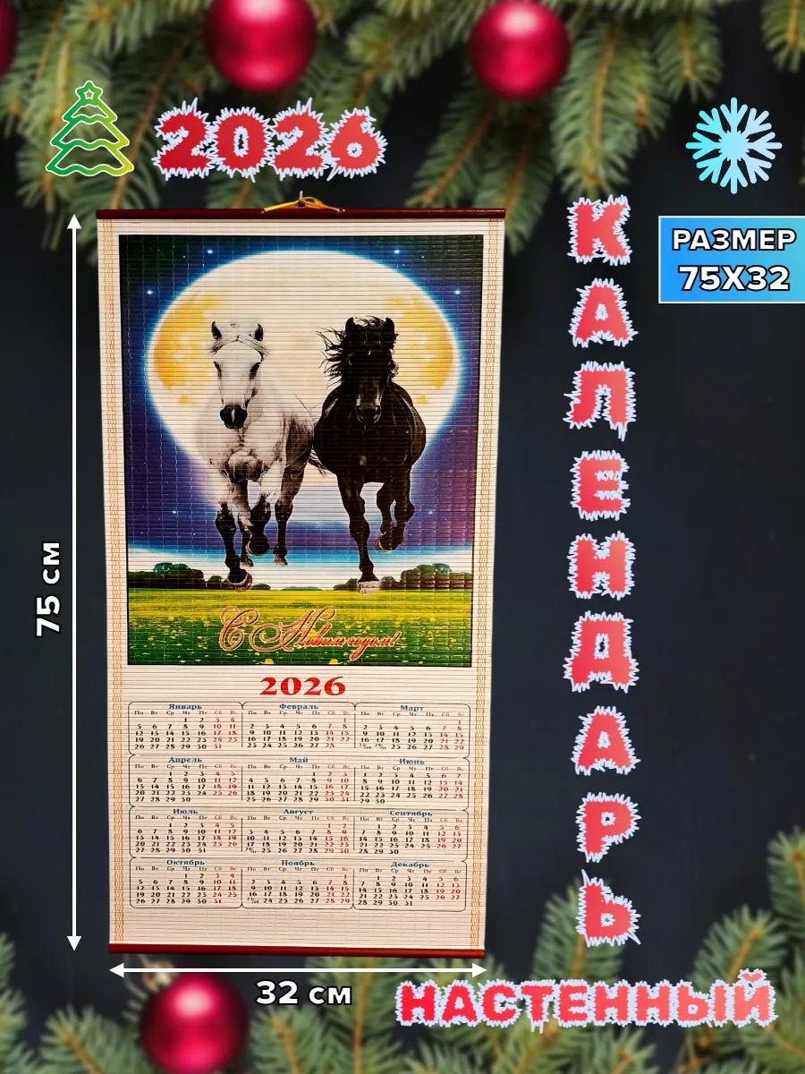 Настенный бамбуковый Календарь 2026 года Лошадь станет стильным и практичным украшением вашего дома или офиса. Календарь 2026 настенный изготовлен из бумаги и дерева в подарочной упаковке. Календарь имеет вертикальный тип и представлен в виде одного большого полотна размером 75см в высоту и 32 см в ширину, что позволяет легко просматривать планы на весь месяц. 10 разных вариантов, приходят случайным образом. Желаем Вам и Вашим близким радостного и счастливого Нового года!